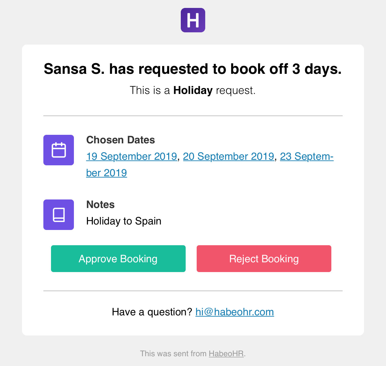 All users who have been granted permission can receive emails regarding booking requests, it will look similar to the image below.
